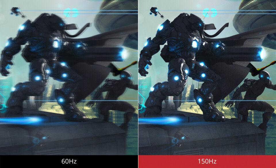 The rapid 150Hz refresh rate eliminates lag and motion blur for seamless gameplay. Experience smooth, flawless visuals no matter the game, from first-person shooters to real-time strategy. You can see the advantage thanks to faster frame loading.