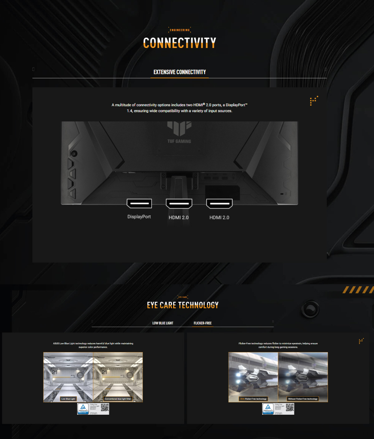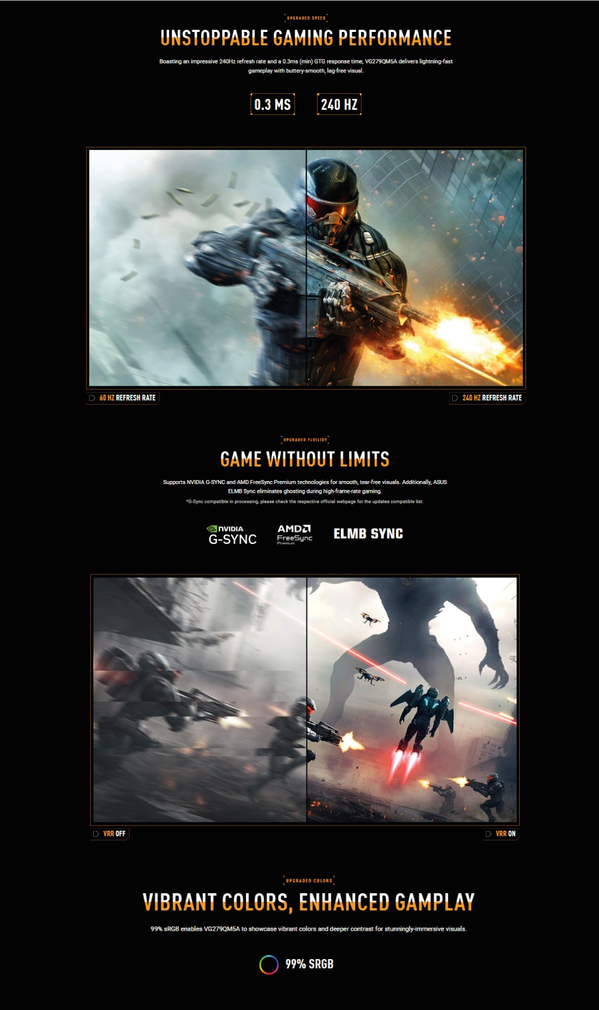 • ASUS Fast IPS technology enables a 0.3ms (min) response time for sharp gaming visuals with high frame rates