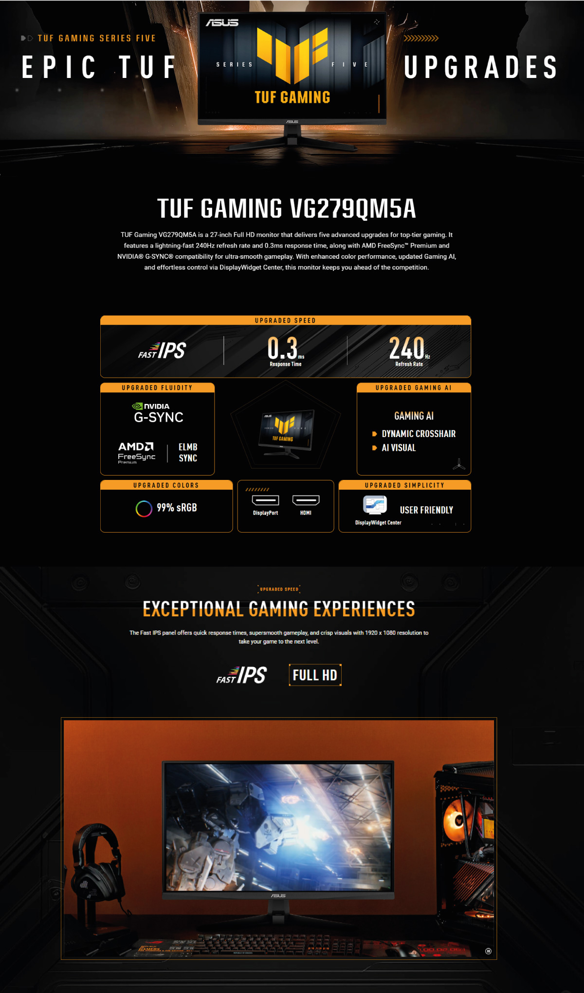 =====ASUS TUF Gaming VG279QM5A 27'' Full HD 240Hz Gaming Monitor | IPS | 0.3ms | G-SYNC | AMD FreeSync=====