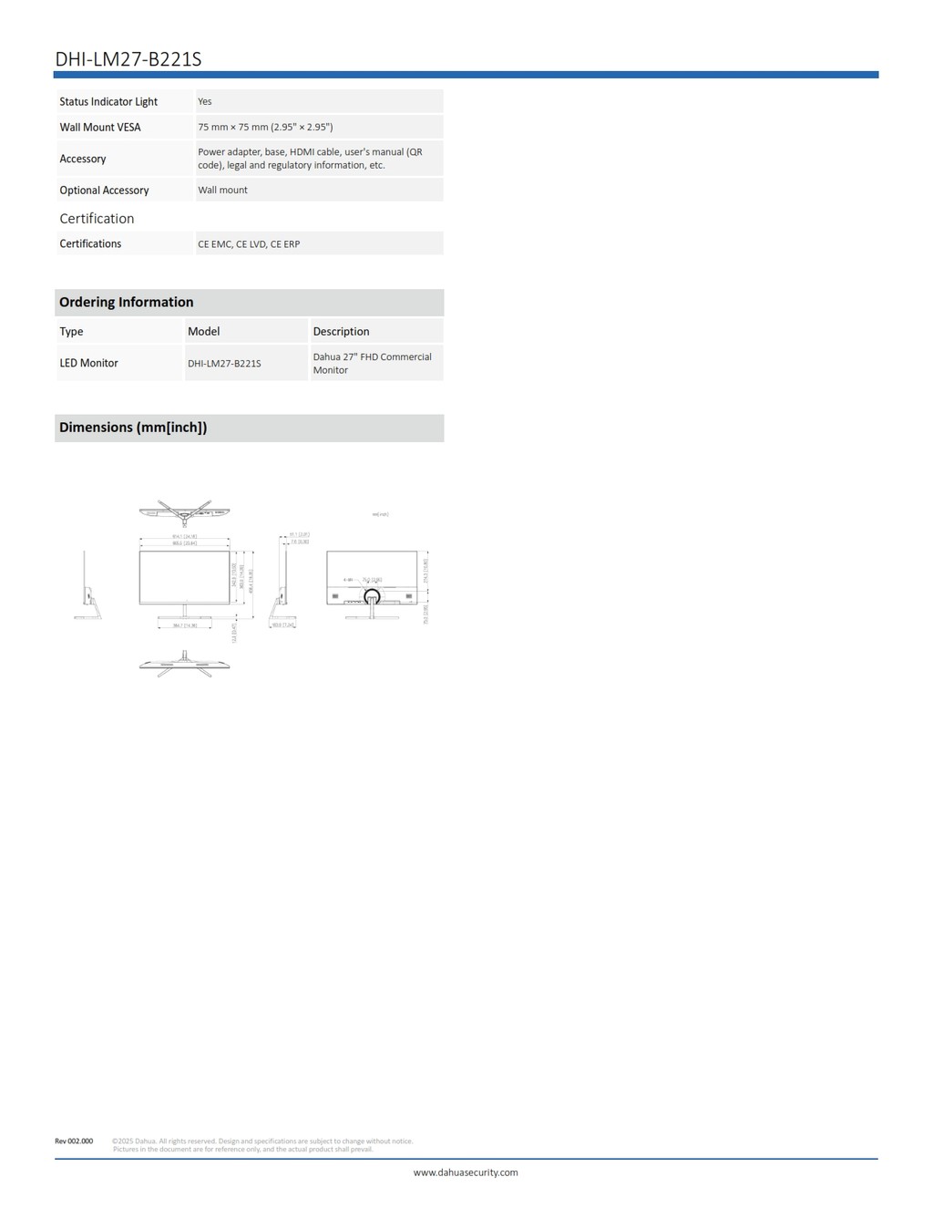 Wall Mount VESA: 75 mm × 75 mm (2.95" × 2.95")