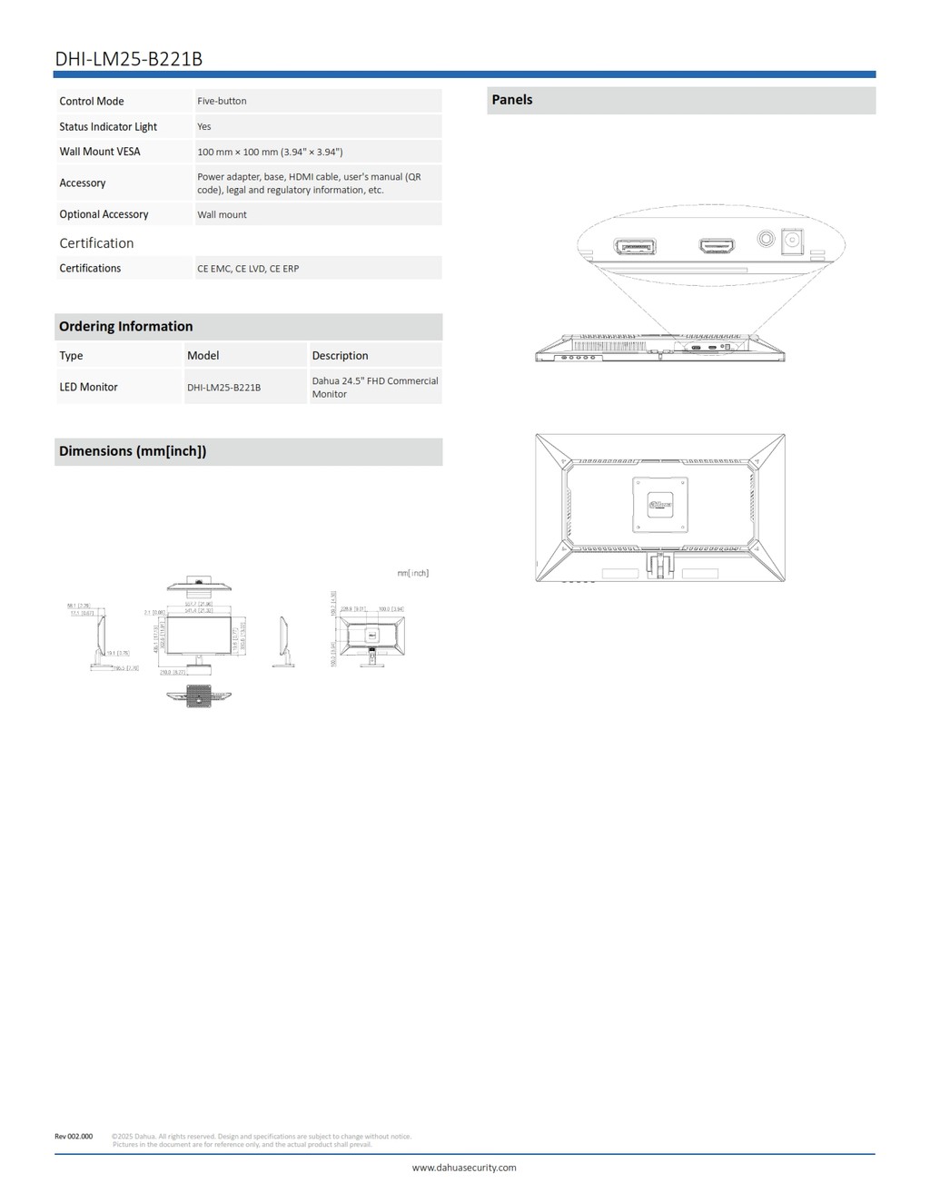 Wall Mount VESA: 100 mm × 100 mm (3.94" × 3.94")