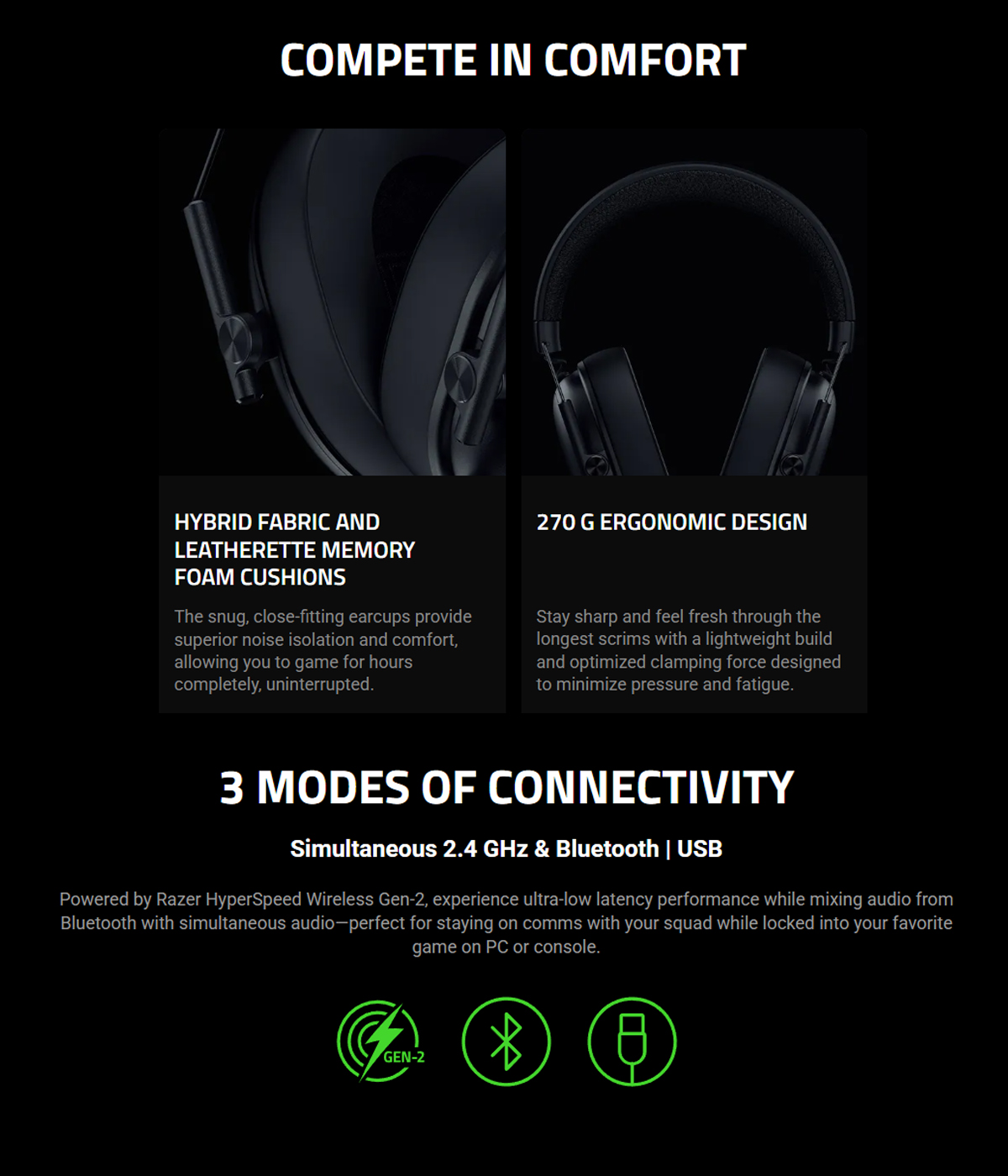 Battery life: Up to 70 hours (2.4 GHz Connection)