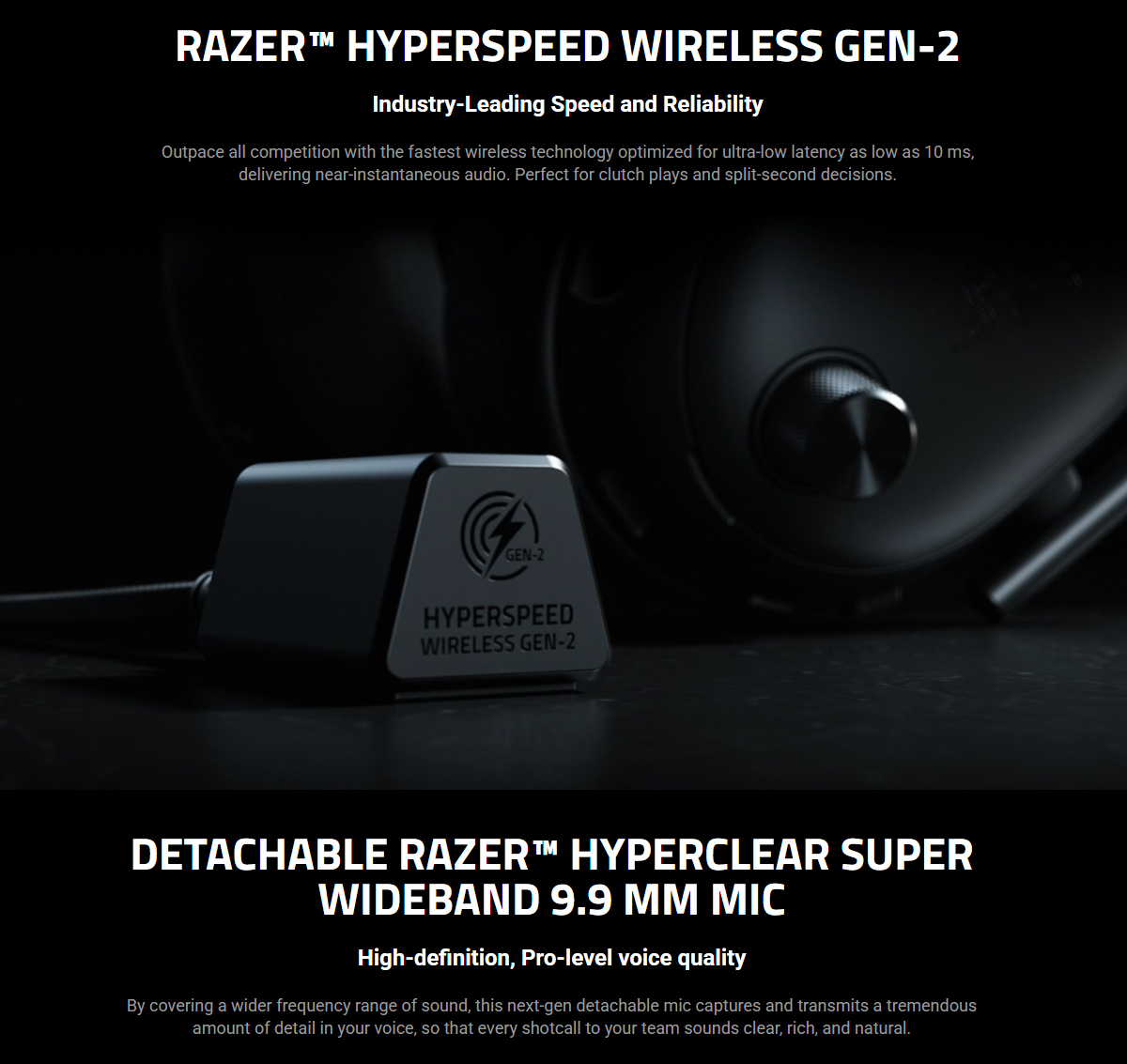 Microphone Style: Detachable Razer HyperClear Super Wideband 9.9 mm Mic