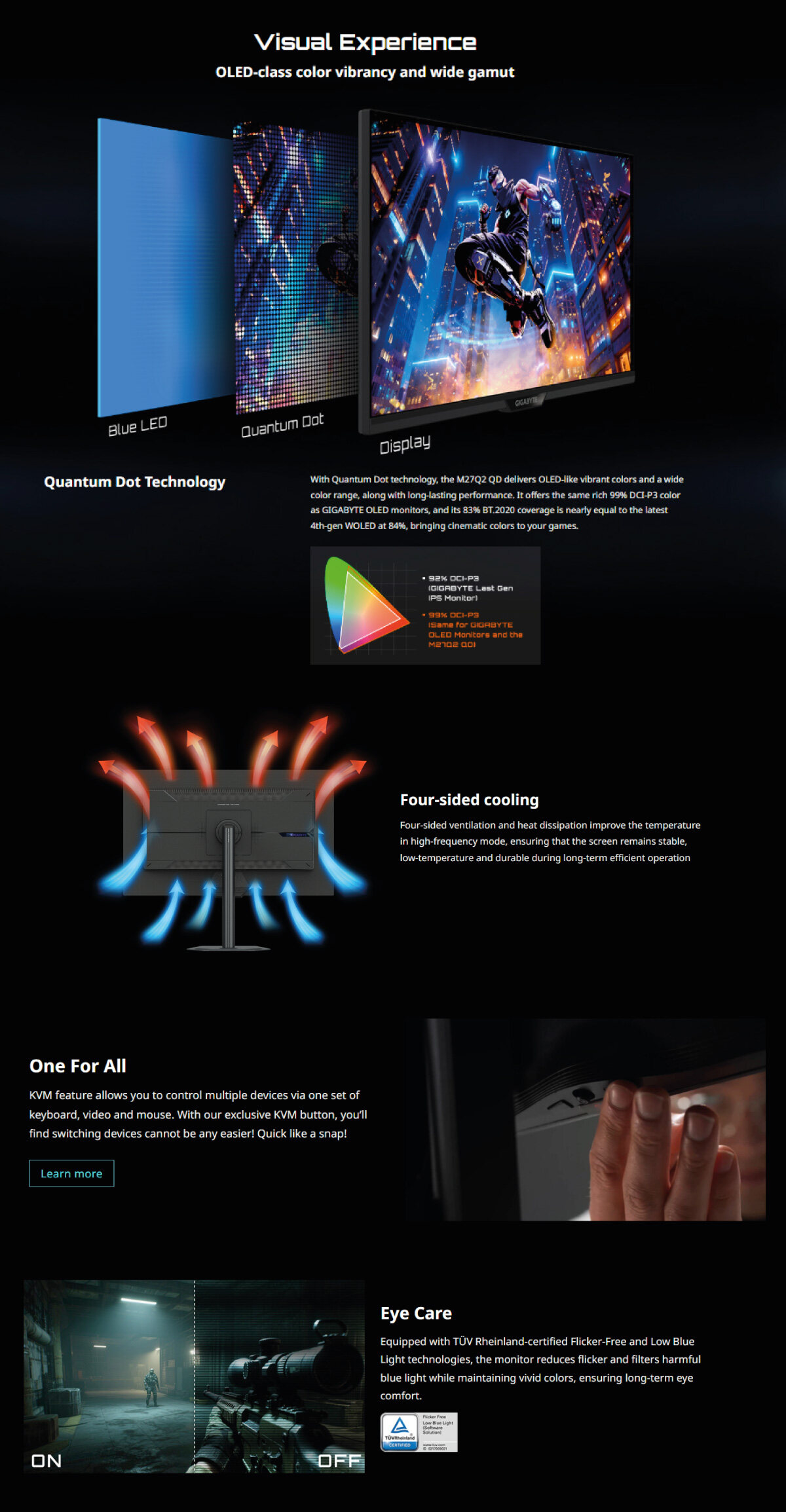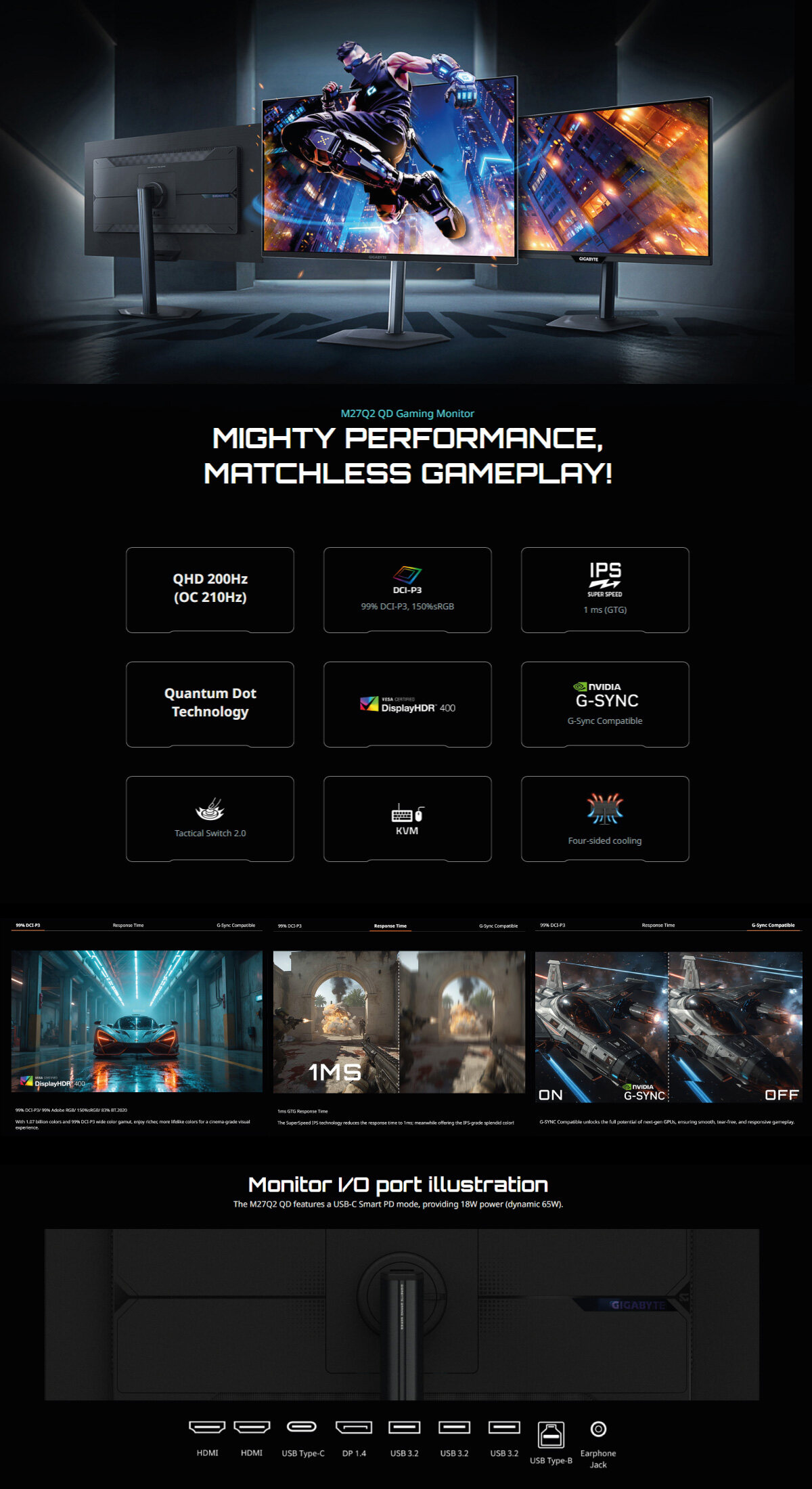 GIGABYTE M27Q2 QD / M27Q2 QD ICE 27" SS IPS QHD Gaming Monitor | 210Hz (OC) | HDR400 | 1ms | G-Sync Compatible | KVM