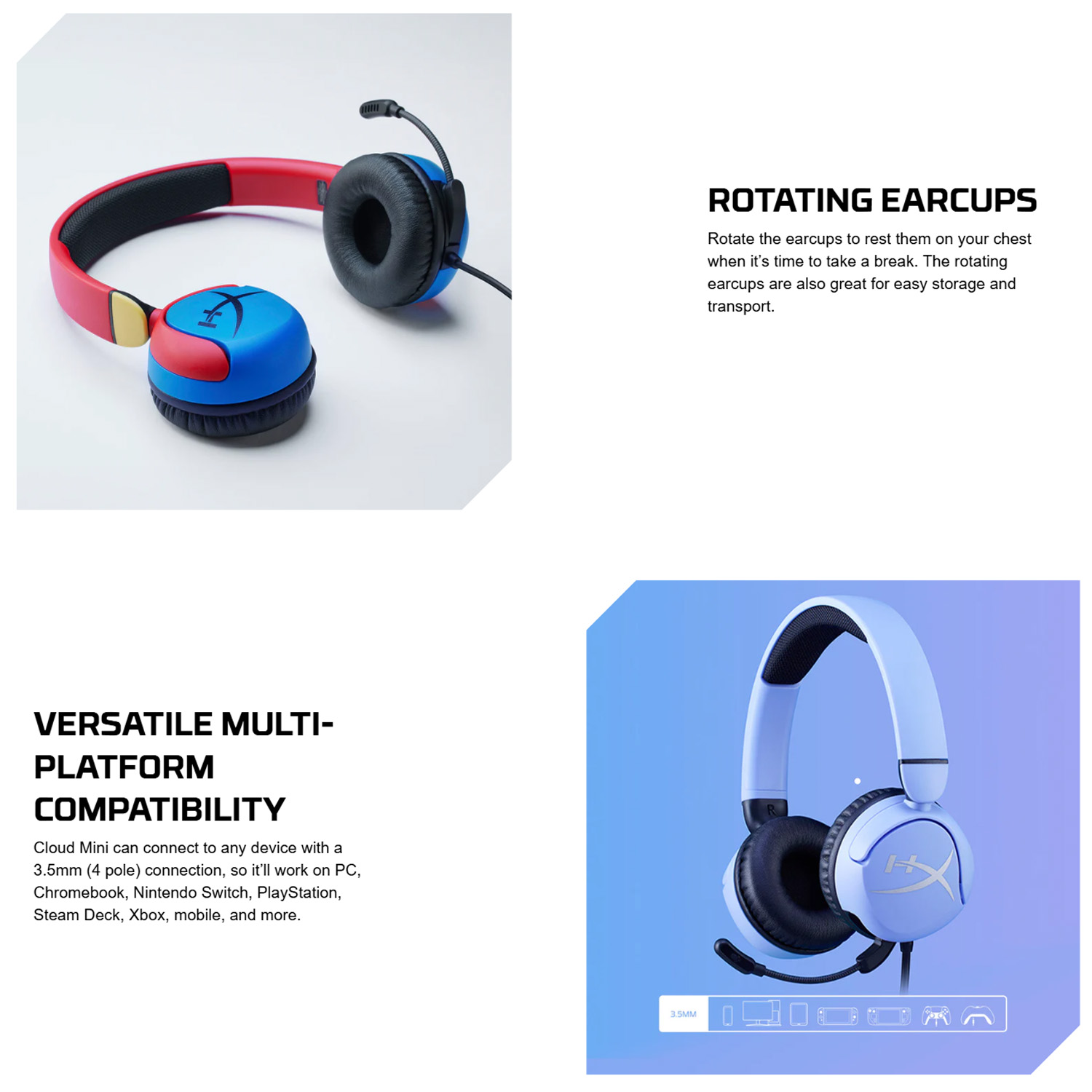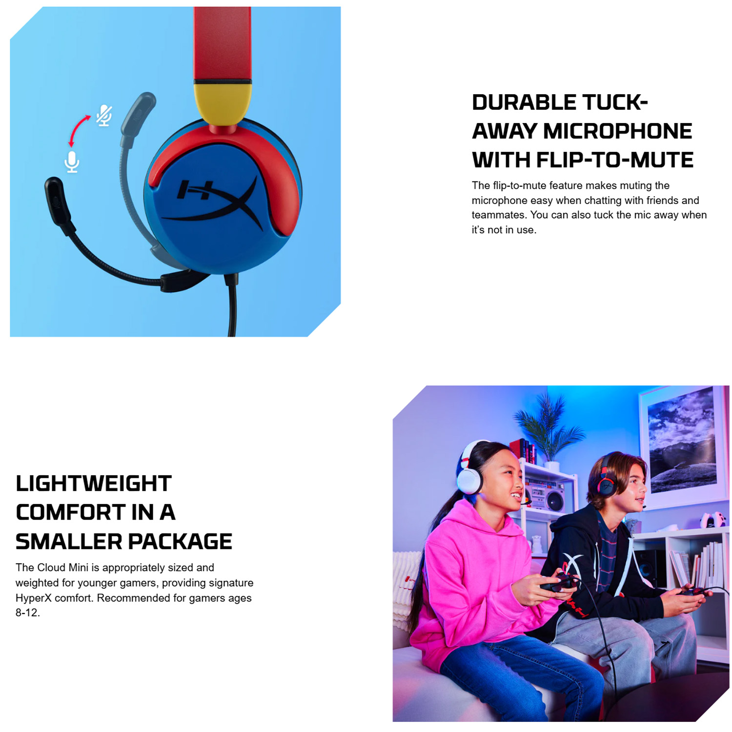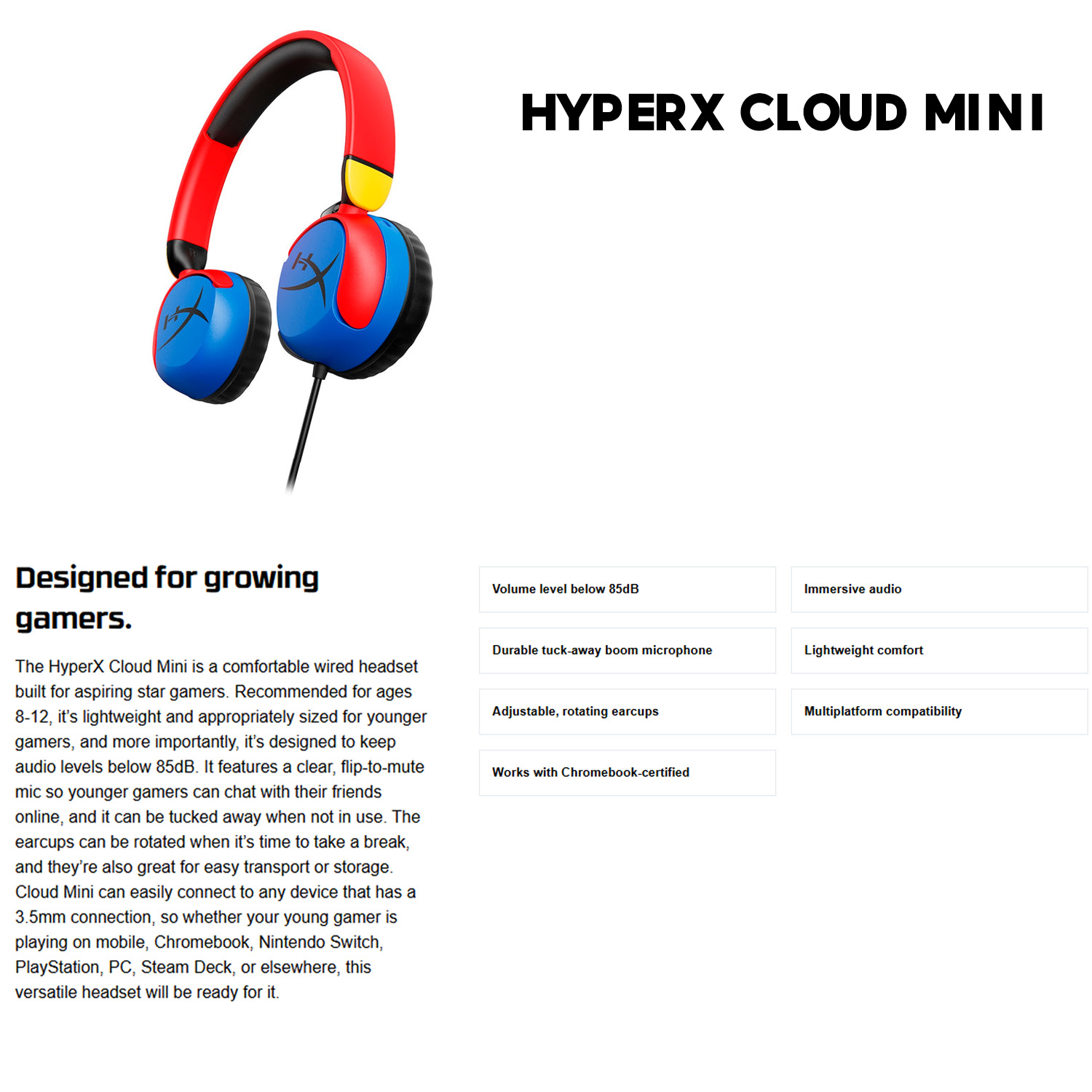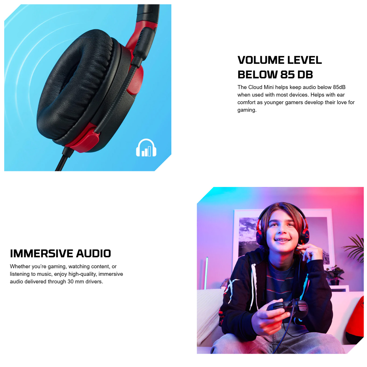 The HyperX Cloud Mini is a comfortable wired headset built for aspiring star gamers. Recommended for ages 8-12, itโs lightweight and appropriately sized for younger gamers, and more importantly, itโs designed to keep audio levels below 85dB.