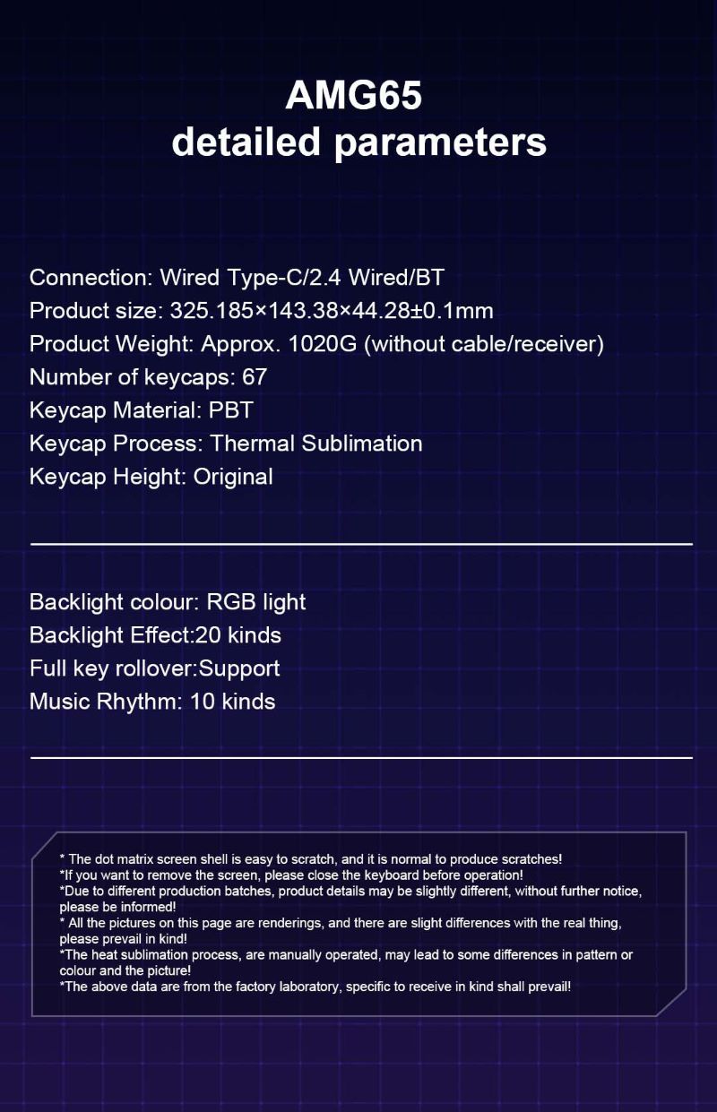 LEOBOG AMG65 65% Dot Matrix + Colour Screen Custom Wireless Bluetooth 3-Mode Mechanical Keyboard Gasket Structure