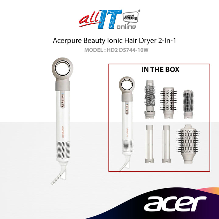 The Acerpure Beauty HD2 Ionic Hair Dryer and Styler is a versatile 2-in-1 styling tool that combines fast-dry ionic technology with multiple attachments for effortless drying, straightening, and volumizing. Designed for everyday convenience, it offers customizable heat and speed settings, a lightweight body, and a sleek design for salon-quality results at home. Perfect for quick touch-ups or full styling sessions.