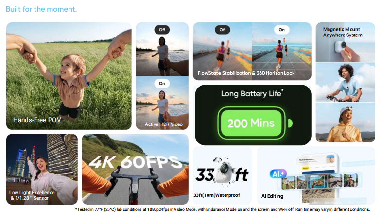 - Action Pod: 108.5±0.5g
