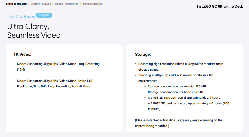 - 4K (4:3): 3840x2880@30fps