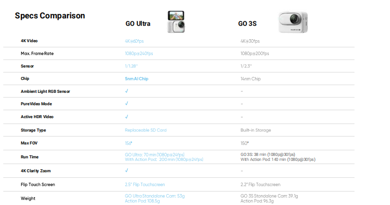 - Action Pod (Touchscreen Closed): 70.4x48.8x33.3mm (2.8x1.9x1.3in)