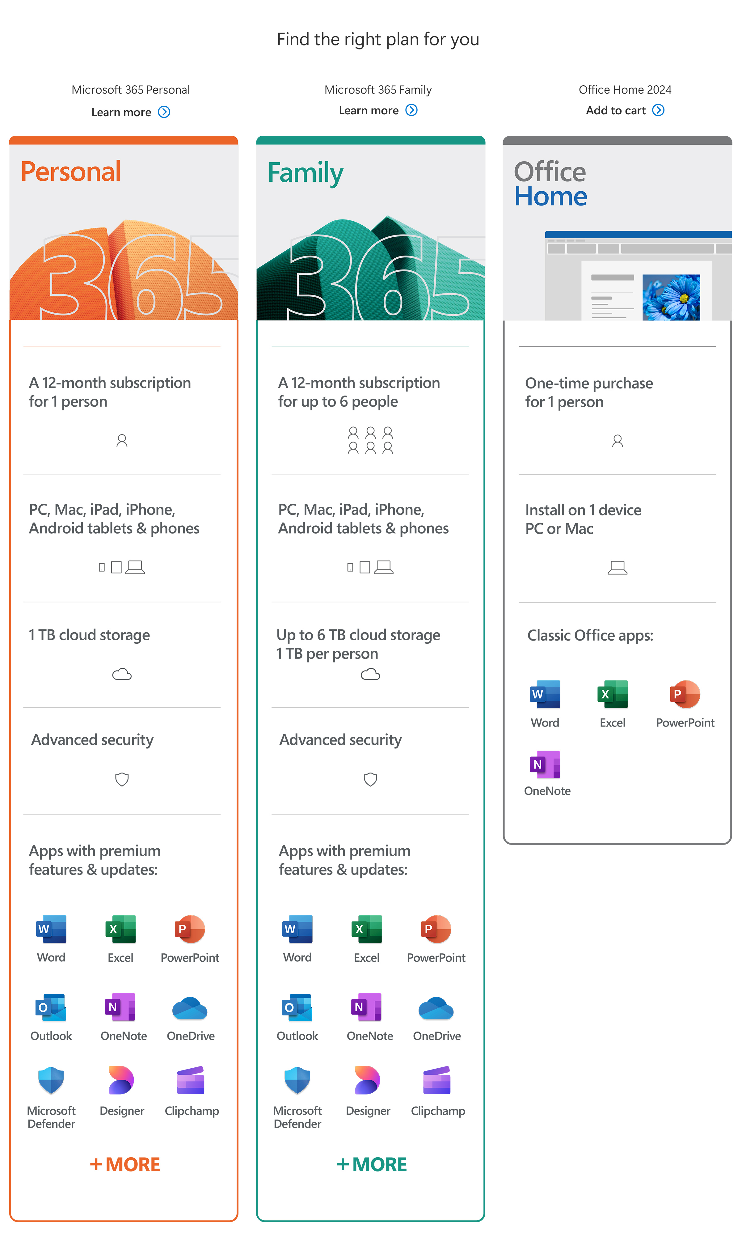 Classic 2024 desktop versions of Word, Excel, PowerPoint, and OneNote
