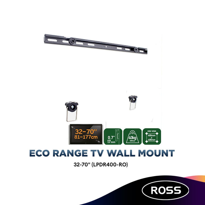 Ross Bracket ECO Range Flat To Wall 32-70 Inch TV Wall Mount Rail Style Mounting VESA 400X400 (LPDR400-RO)
