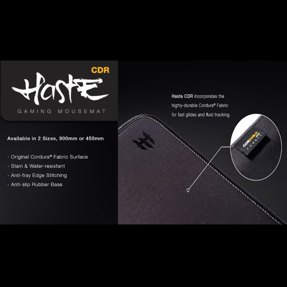 Haste Mousemats were built for precise mouse tracking and maximum control, perfect for Gamers. Large in size, the mouse mat will fit your keyboard and have ample room for extensive mouse movement.
