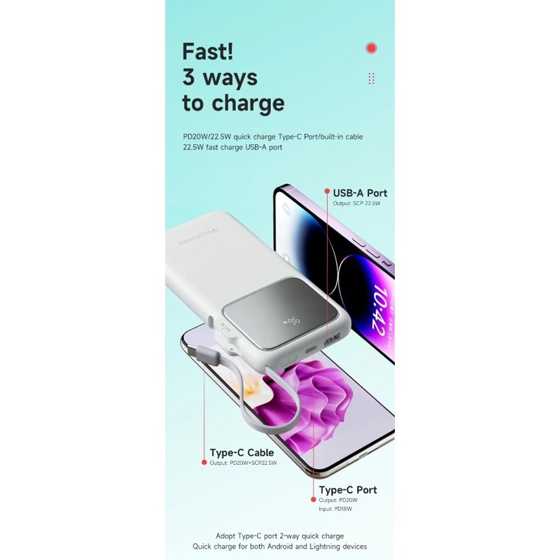 USB-A Output: 5V=3A/9V2A/12V=1.5A/10V=2.25A