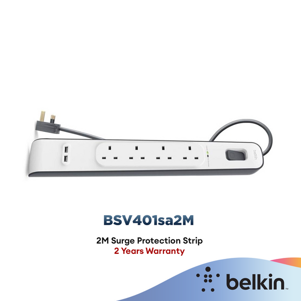 Belkin 6-Way 2m with 2 USB BSV604sa2M Surge Protector