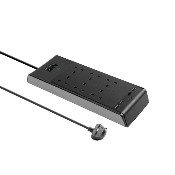 MasterPlug 6-Way 2m W/2 USB 3.1 Socket Surge Protector (SRG DSU62PB-MPA Blk)