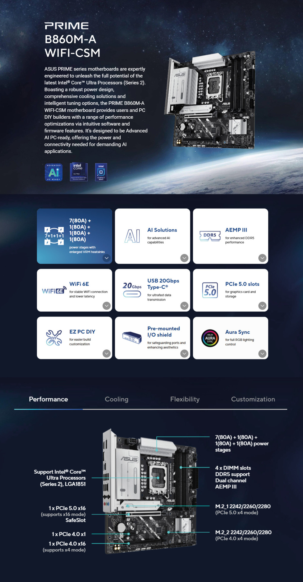 Intelยฎ Coreโข Ultra Processors (Series 2): M.2_1 slot (Key M), type 2280 (supports PCIe 5.0 x4 mode)