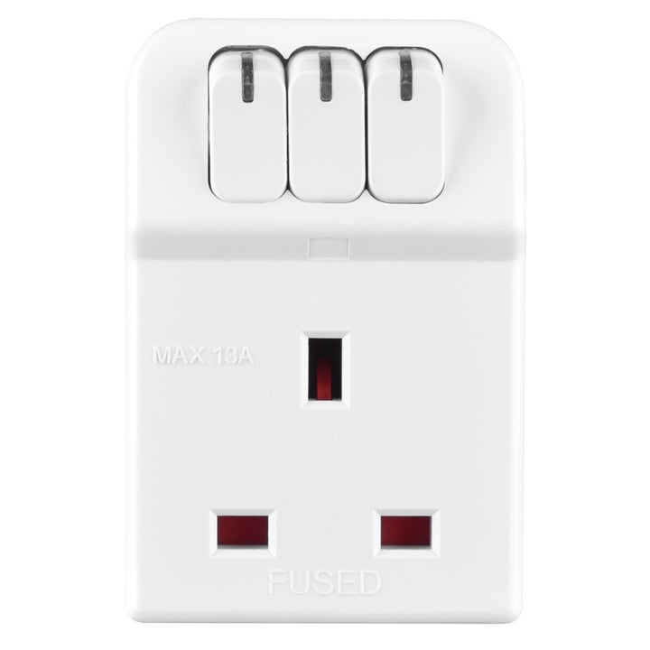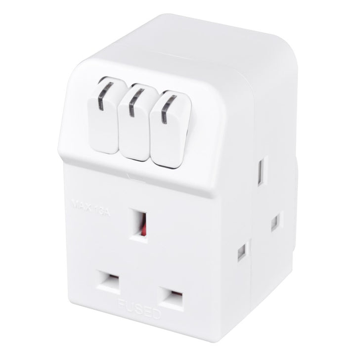 Masterplug MSWG3 Switched Adaptor with 3 Sockets, 13Amp, Safety Shutters & Individually Switched