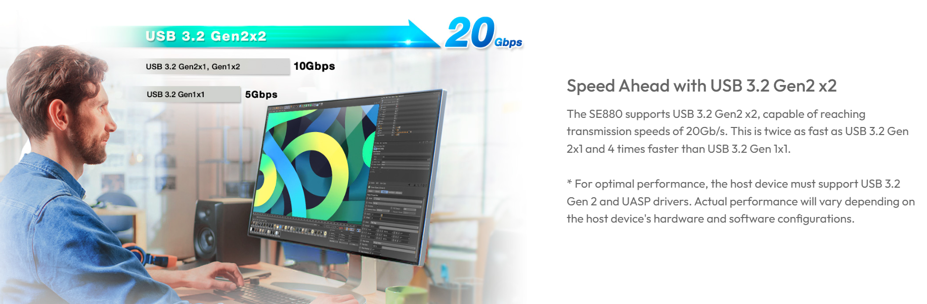●Interface: USB 3.2 Gen2 x2 Type-C (USB 20Gbps)