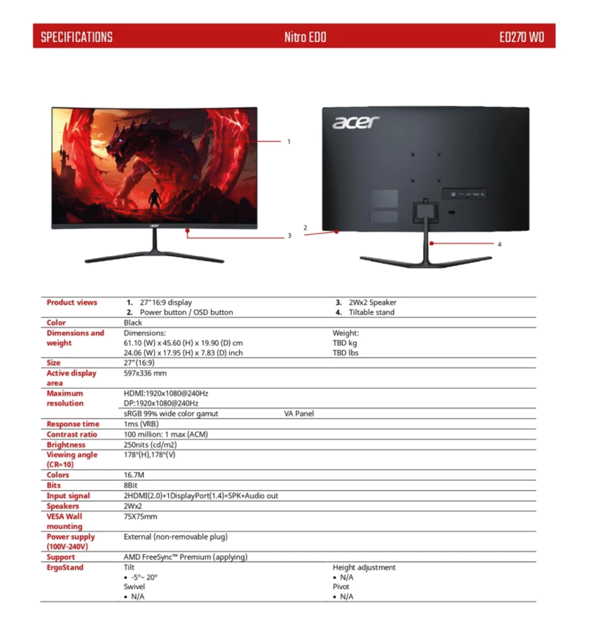RESOLUTION : 1920 x 1080 @ 240 Hz*