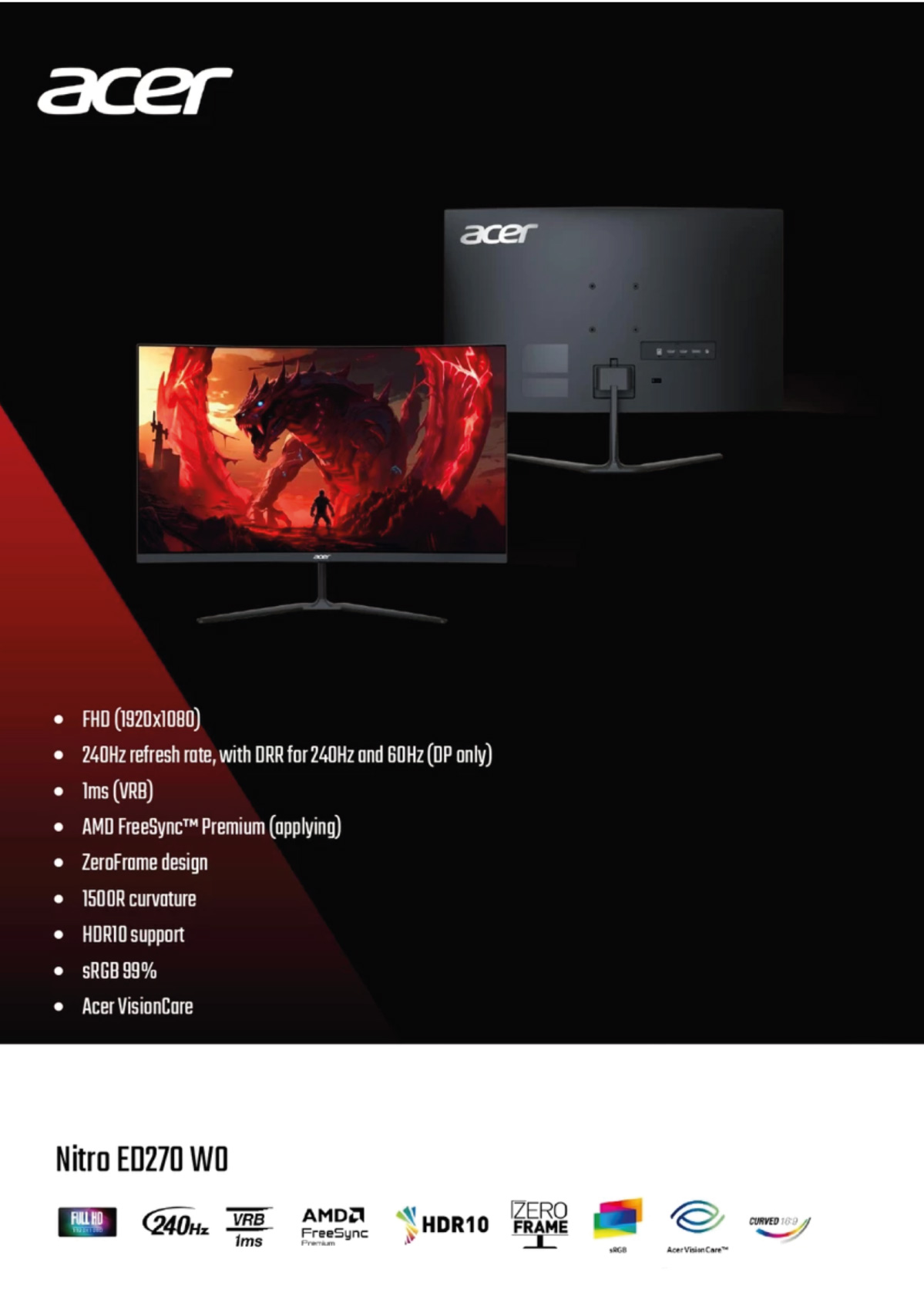 PANEL SIZE : 27 inch / 1500R Curved