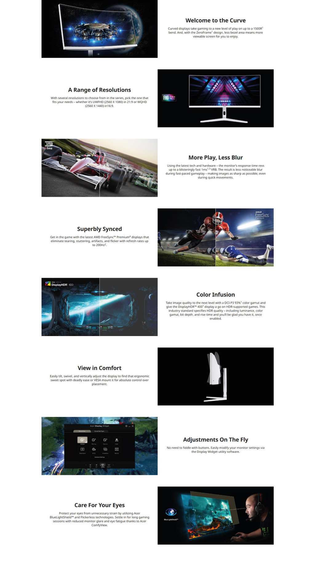 Monitor Features: AMD FreeSync™ Premium anti-tearing technology; VESA Certified DisplayHDR 400
