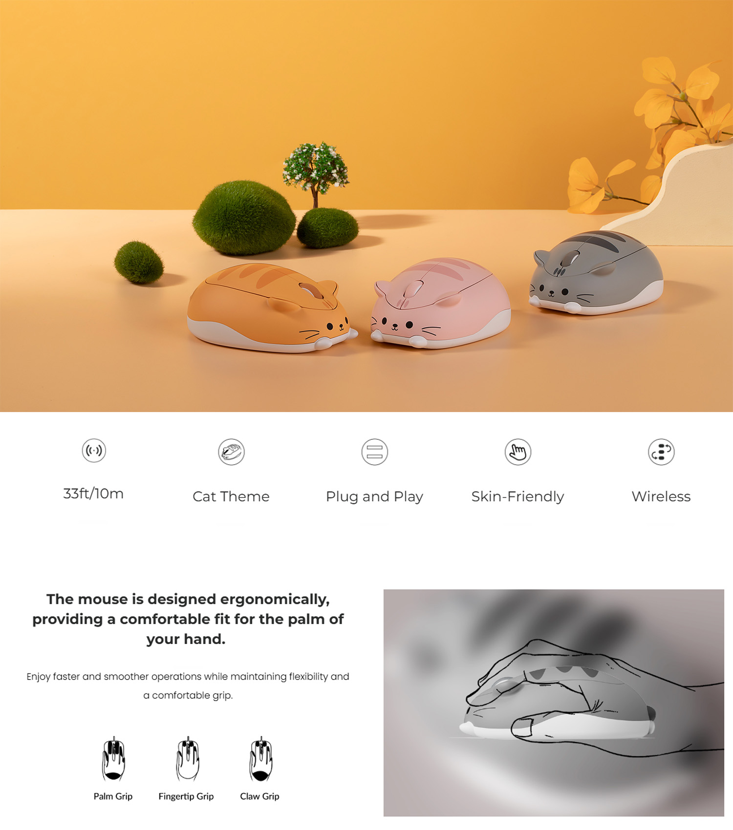 Wireless Mouse with Cat Theme