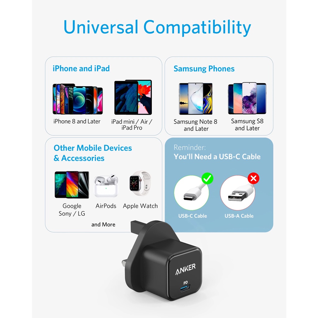 โ Wall Anker PowerPort III 1port USB-C PD (20W) -A2149