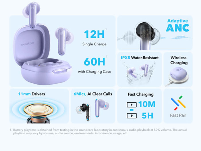 Upgrade your daily listening with Anker Soundcore P40i, featuring adaptive noise cancelling that automatically adjusts to your surroundings. Enjoy punchy bass, clear vocals, and ultra-long battery life—perfect for work, travel, and entertainment.