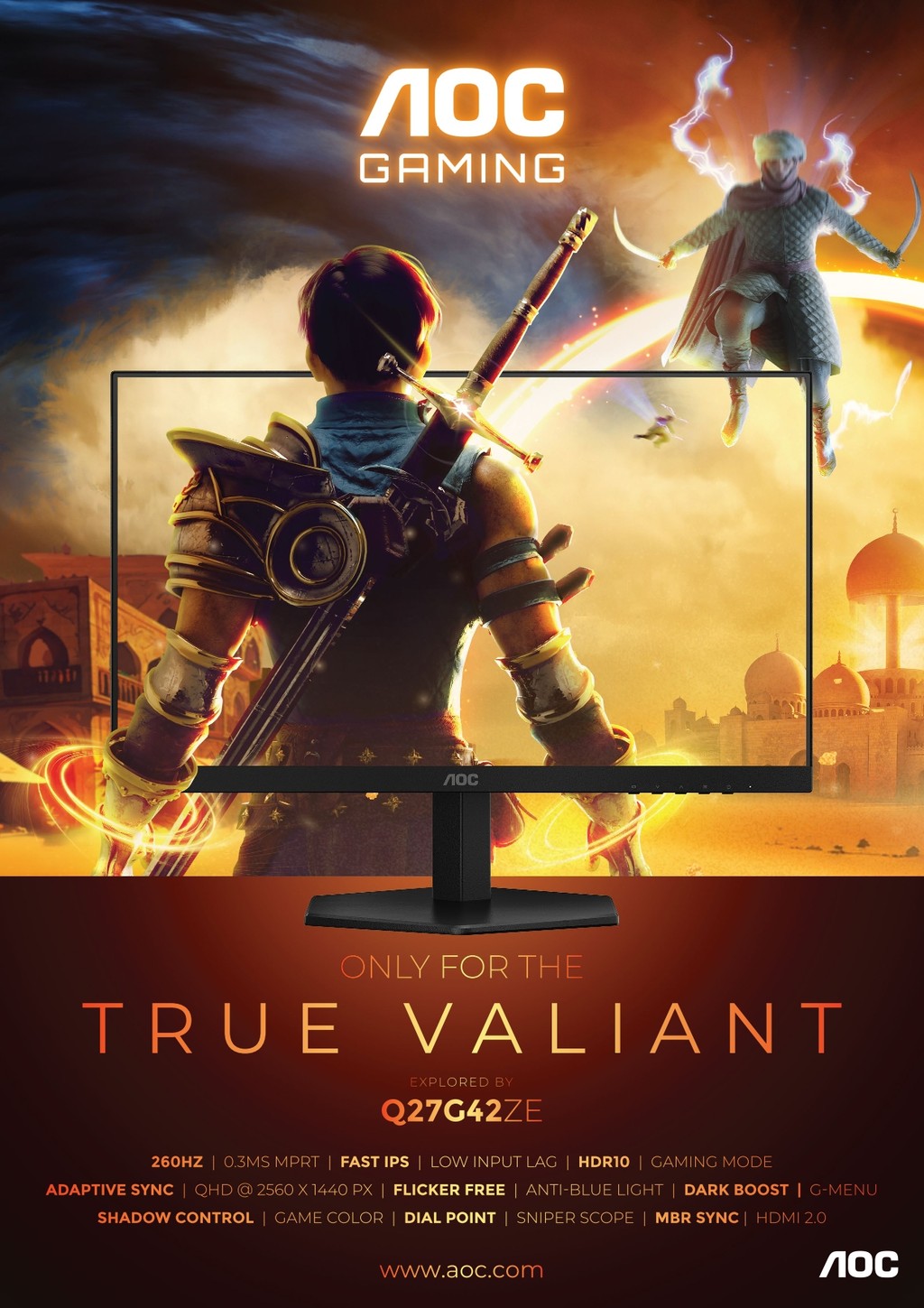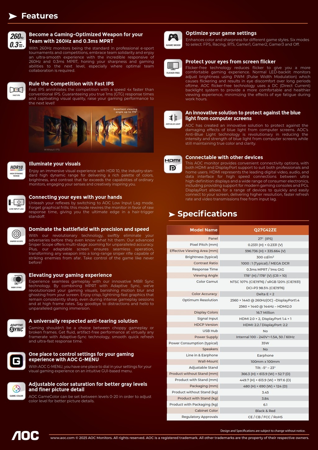 AOC Q27G42ZE 27" QHD IPS 260Hz Gaming Monitor | 0.3ms | HDR10 | Adaptive Sync | 2560x1440 | Low Input Lag | Flicker-free