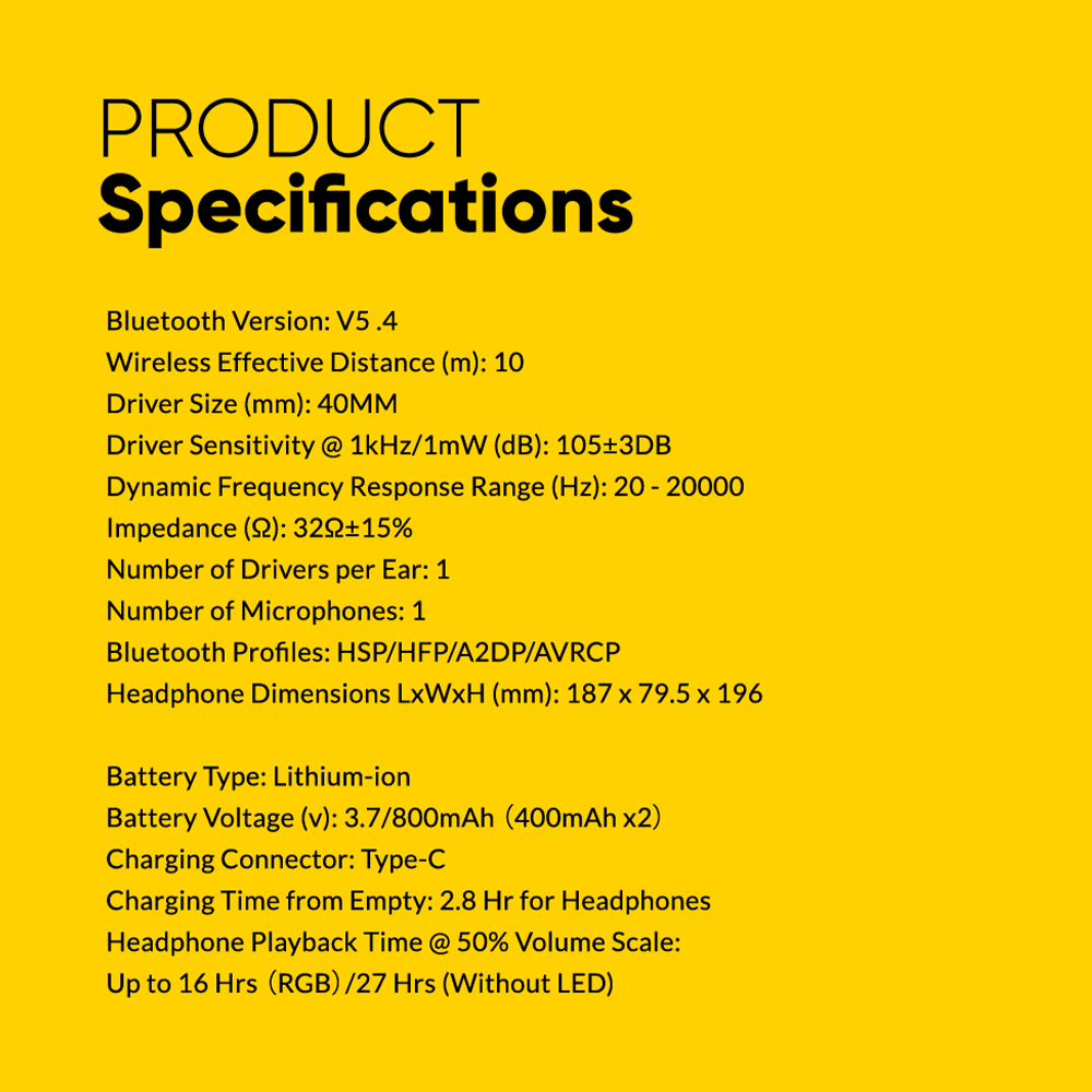 Connectivity Modes: 2.4G wireless, Bluetooth 5.4, AUX wired, USB/Type-C.