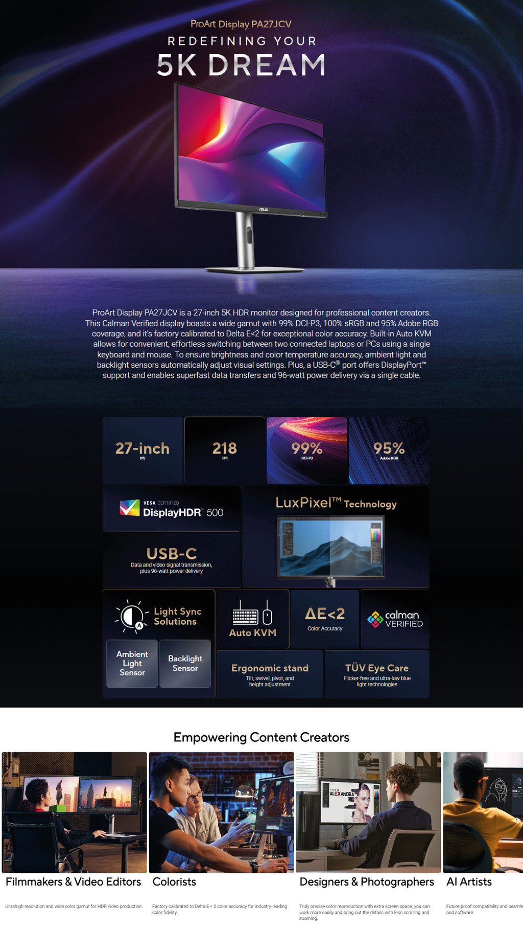 27-inch 5K (5120 x 2880) LuxPixel™ AGLR display with IPS 178° wide viewing angle panel