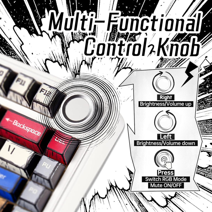 This 81-key 75% layout compact keyboard integrates all the essential keys in a smaller footprint, making it perfect for streamlined desks and mobile setups without sacrificing functionality; with the multi-function knob, you can easily control the backlight and media without disrupting your workflow