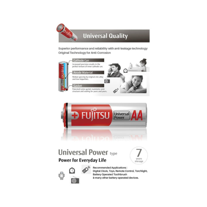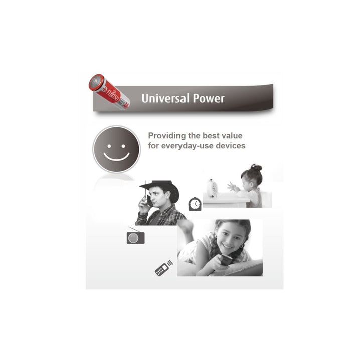 Fujitsu Universal Range of Alkaline battery is of the highest quality, from toys and games to flashlights, remotes, console controllers and smoke alarms, Fujitsu Alkaline batteries power the devices that you use each and every day.