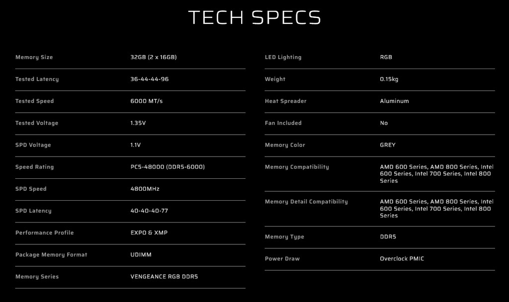 Corsair Vengeance RGB DDR5 6000MT/s CL36 16GB