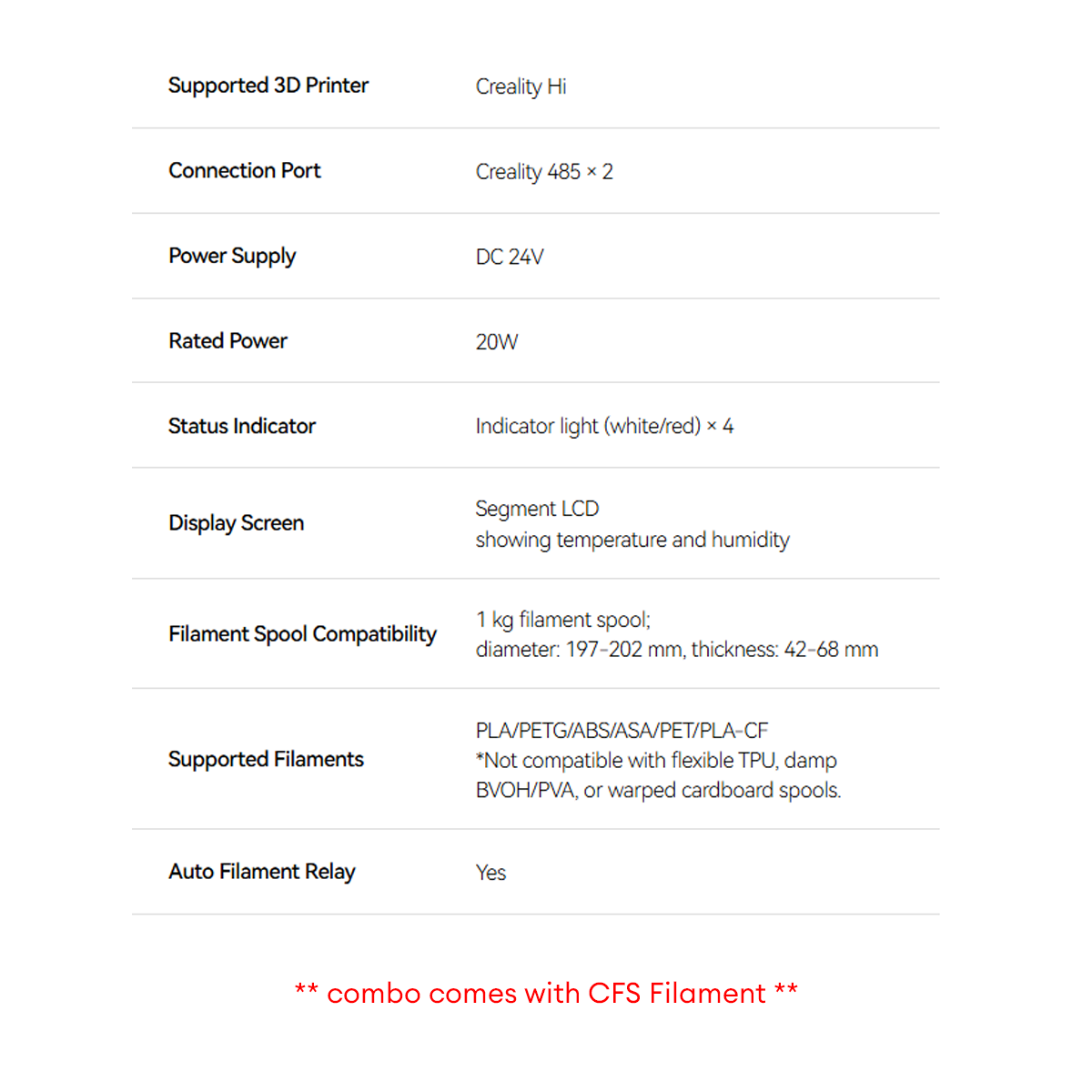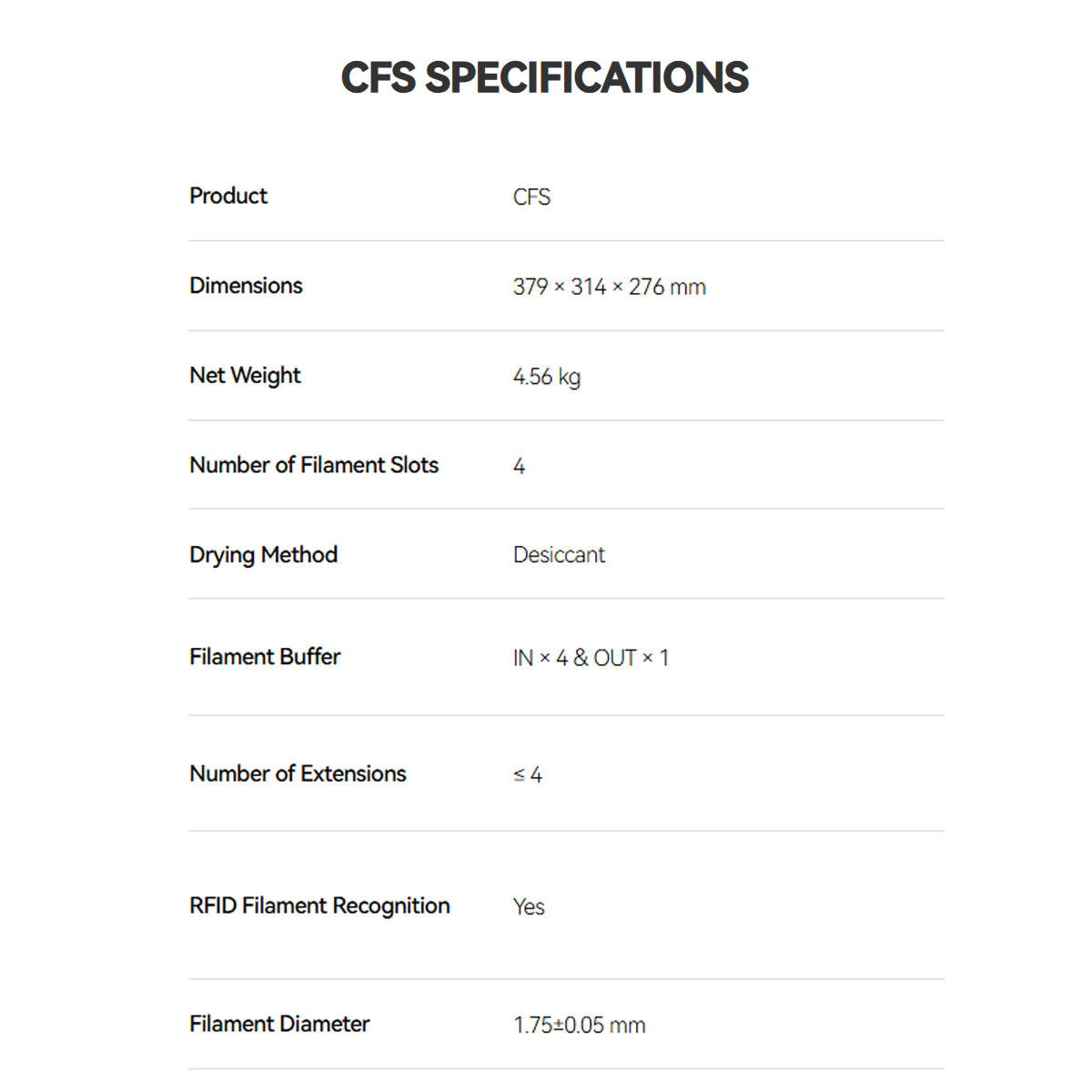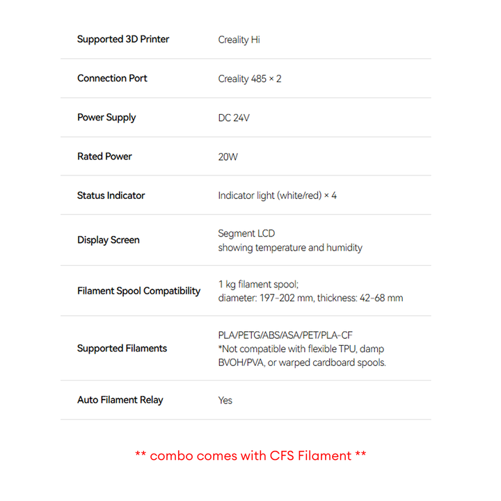 - Auto Filament Relay: Yes (with CFS)