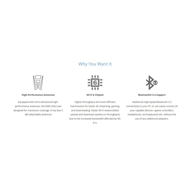| Wireless Standards | • IEEE 802.11ax/ac/n/a 5 GHz • IEEE 802.11ax/n/g/b 2.4 GHz • BT 5.2 |