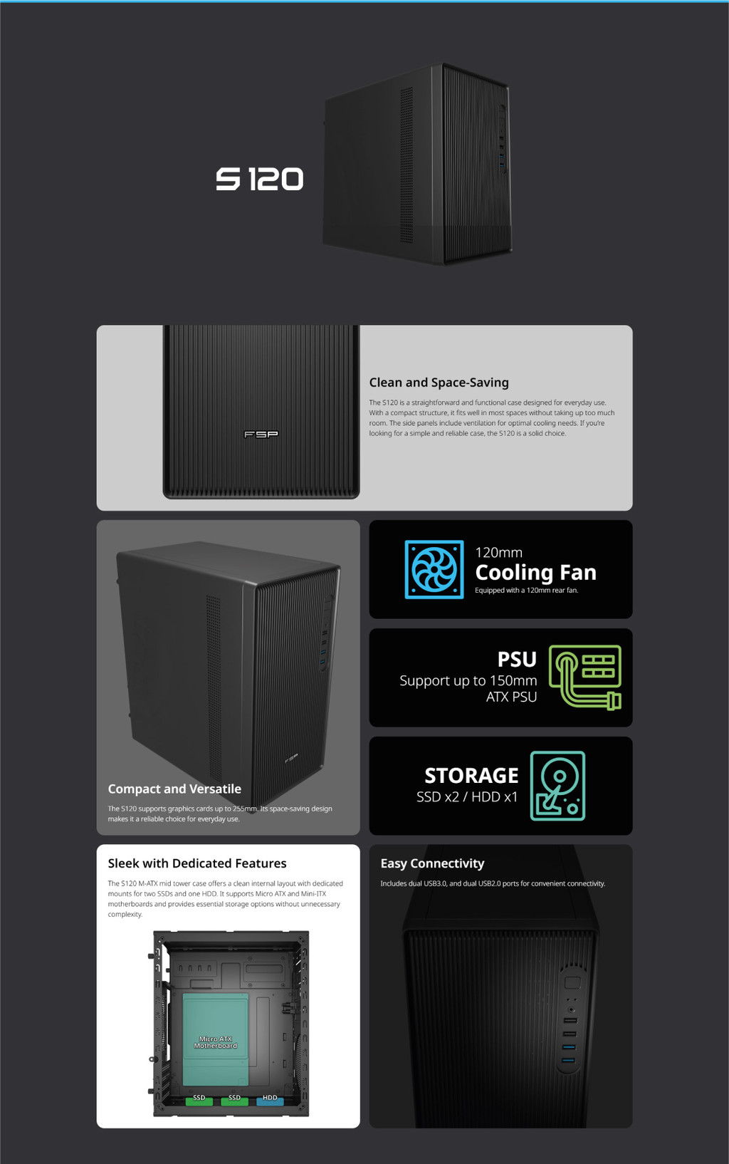 Fan&Water Cooler Support: Front: 120mm x 1, Rear: 120mm x 1