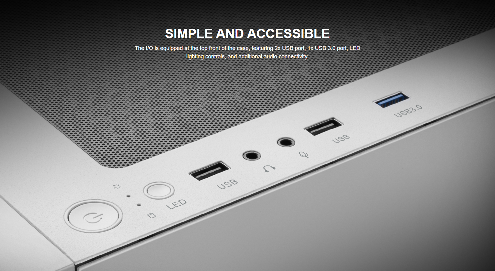 I/O Ports : USB 3.0 x1, USB 2.0 x2, HD Audio x1, Fan LED Control x1
