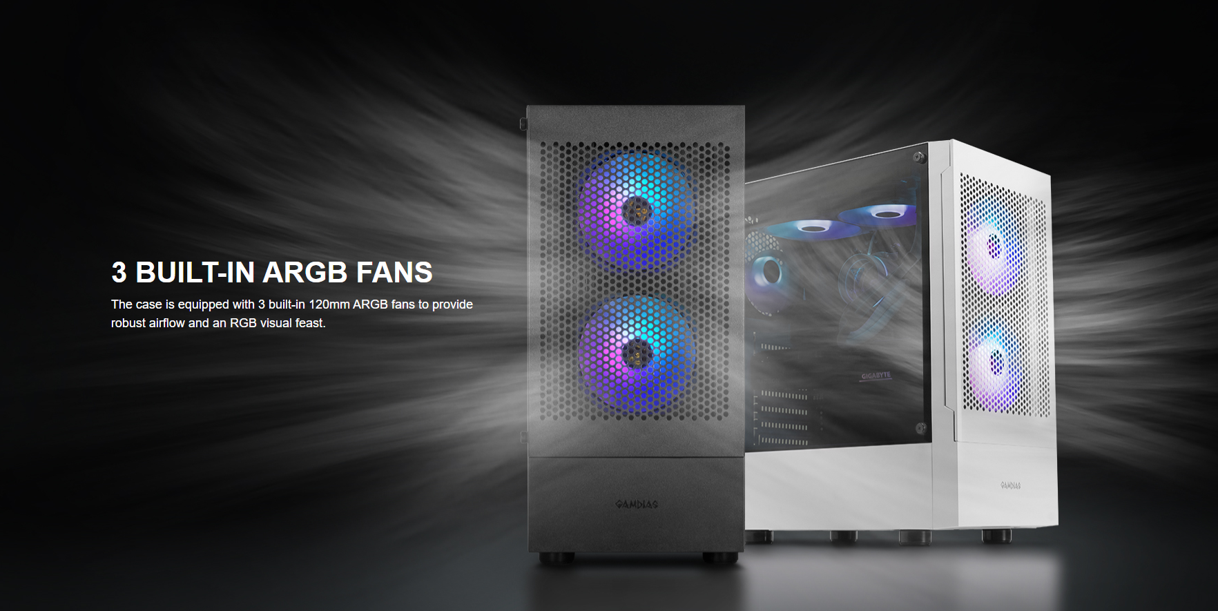 PRE-INSTALLED FAN : 3x 120mm ARGB (FRONT & REAR)