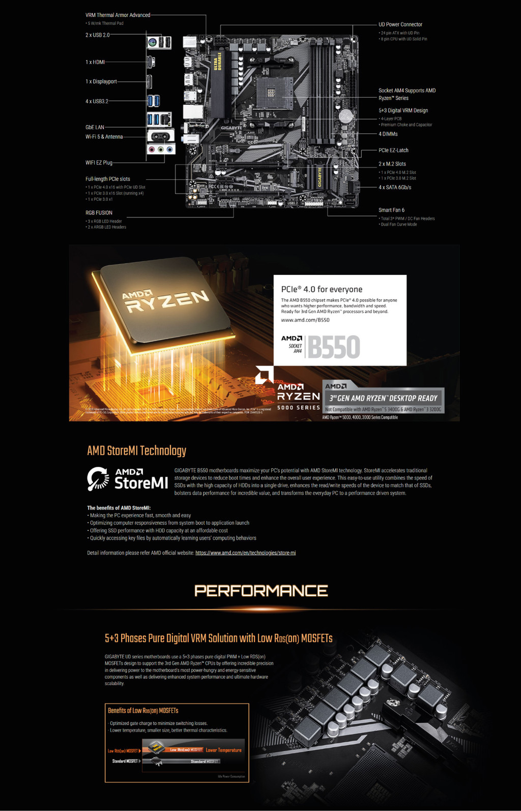 AMD Ryzenโข 5000/3000 Series Processors support SATA and PCIe 4.0x4/x2 SSDs