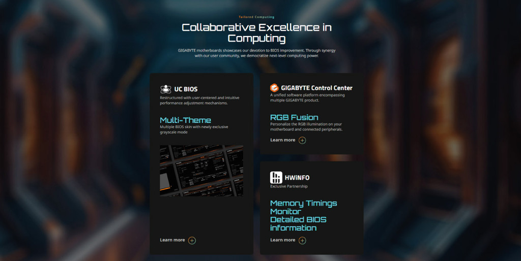 Support for GIGABYTE Control Center (GCC) * Available applications in GCC may vary by motherboard model. Supported functions of each application may also vary depending on motherboard specifications.