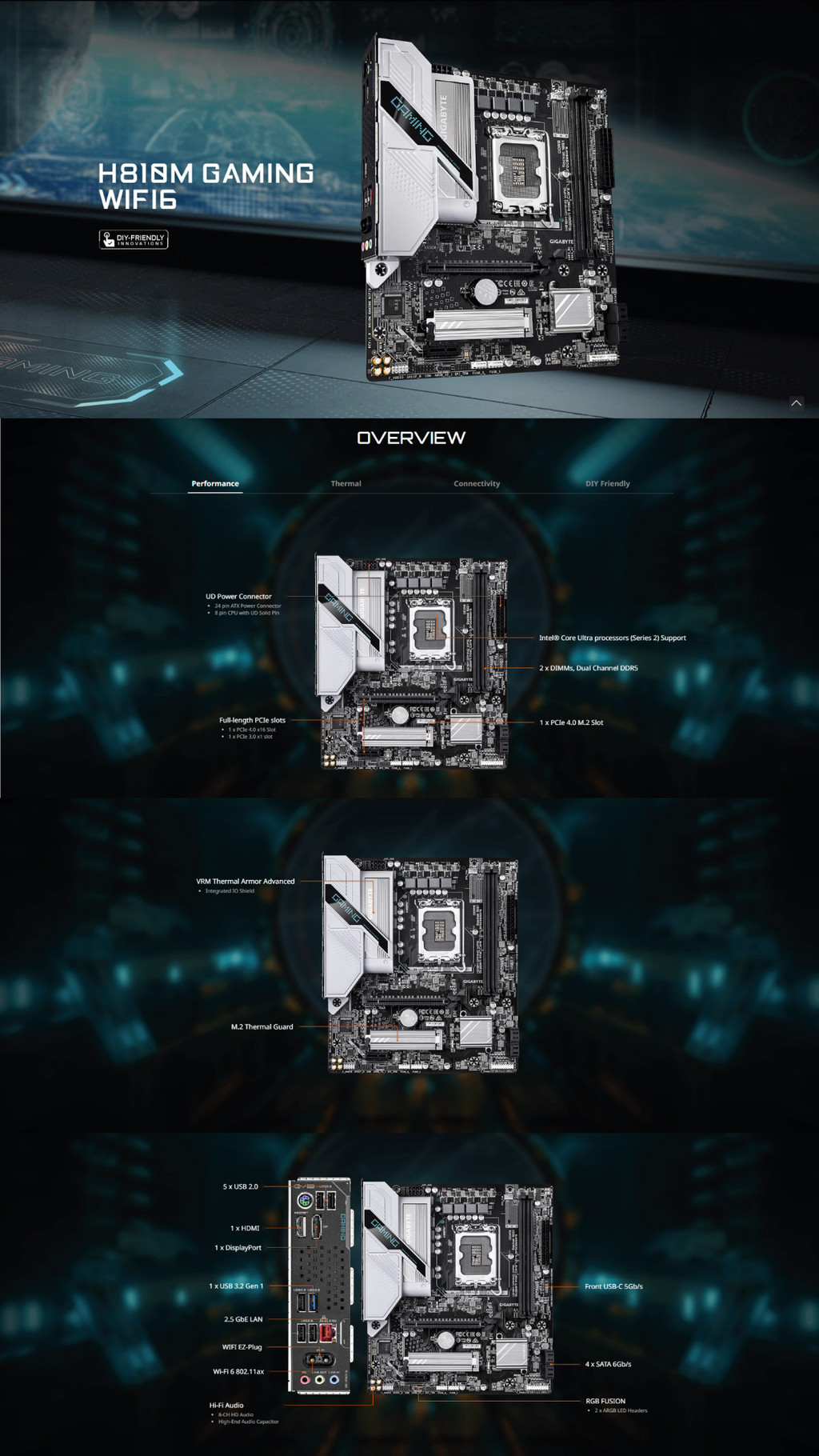 • LGA1851 socket: Support for Intel ® Core™ Ultra Processors (Go to GIGABYTE's website for the latest CPU support list.)