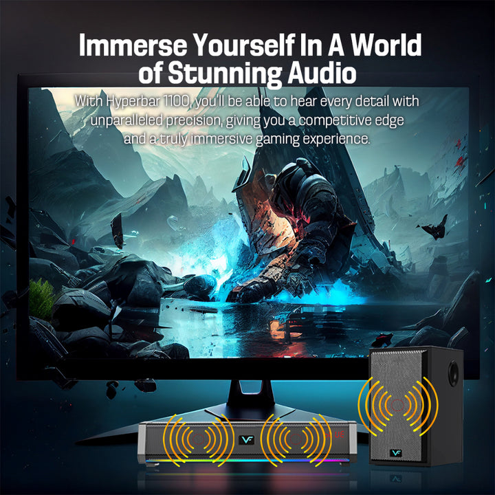 The VF Hyperbar 1100 is an impressive audio system that combines a soundbar and a subwoofer to deliver immersive sound quality.