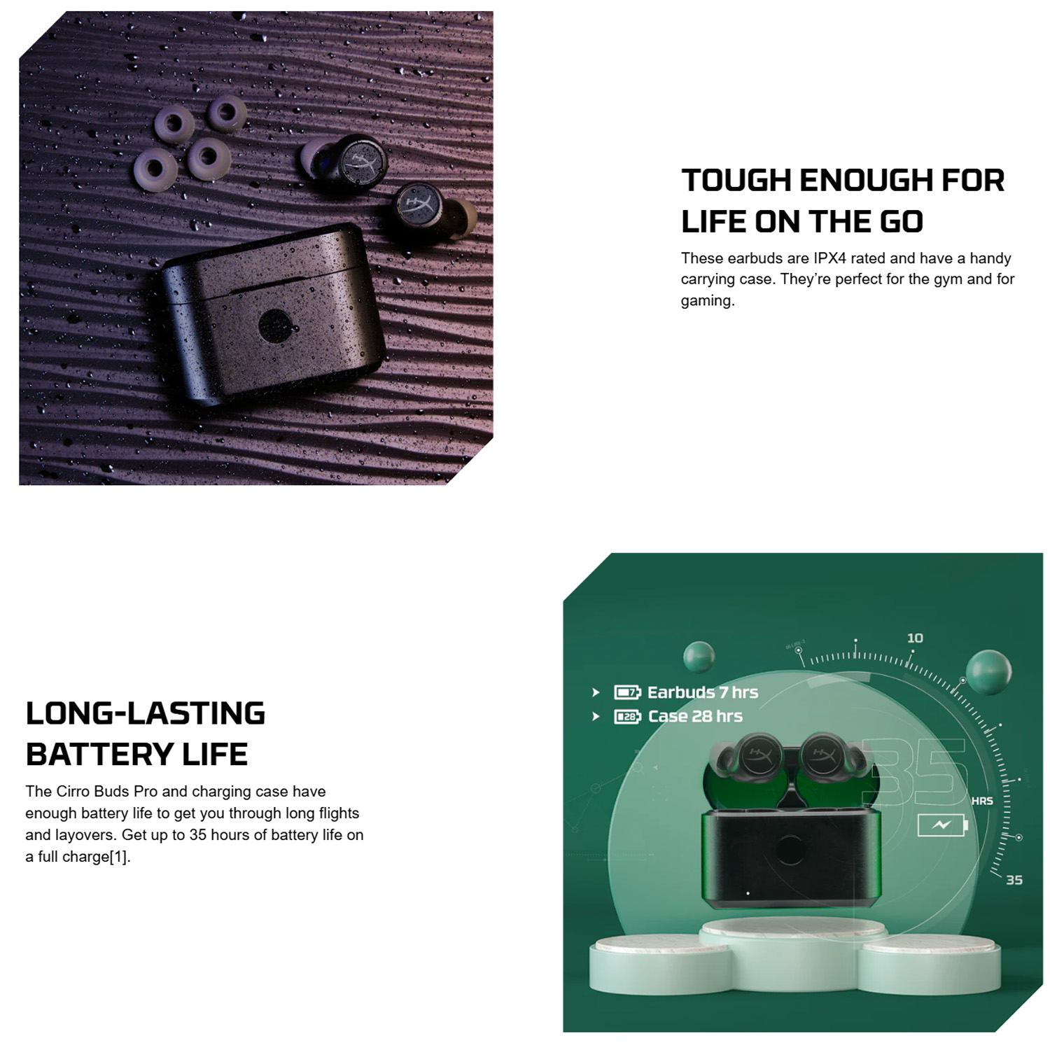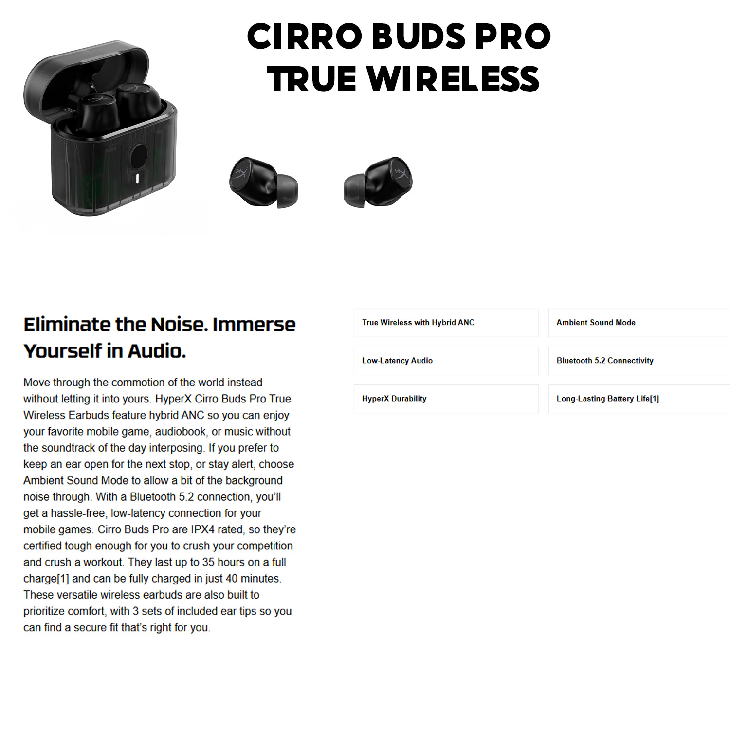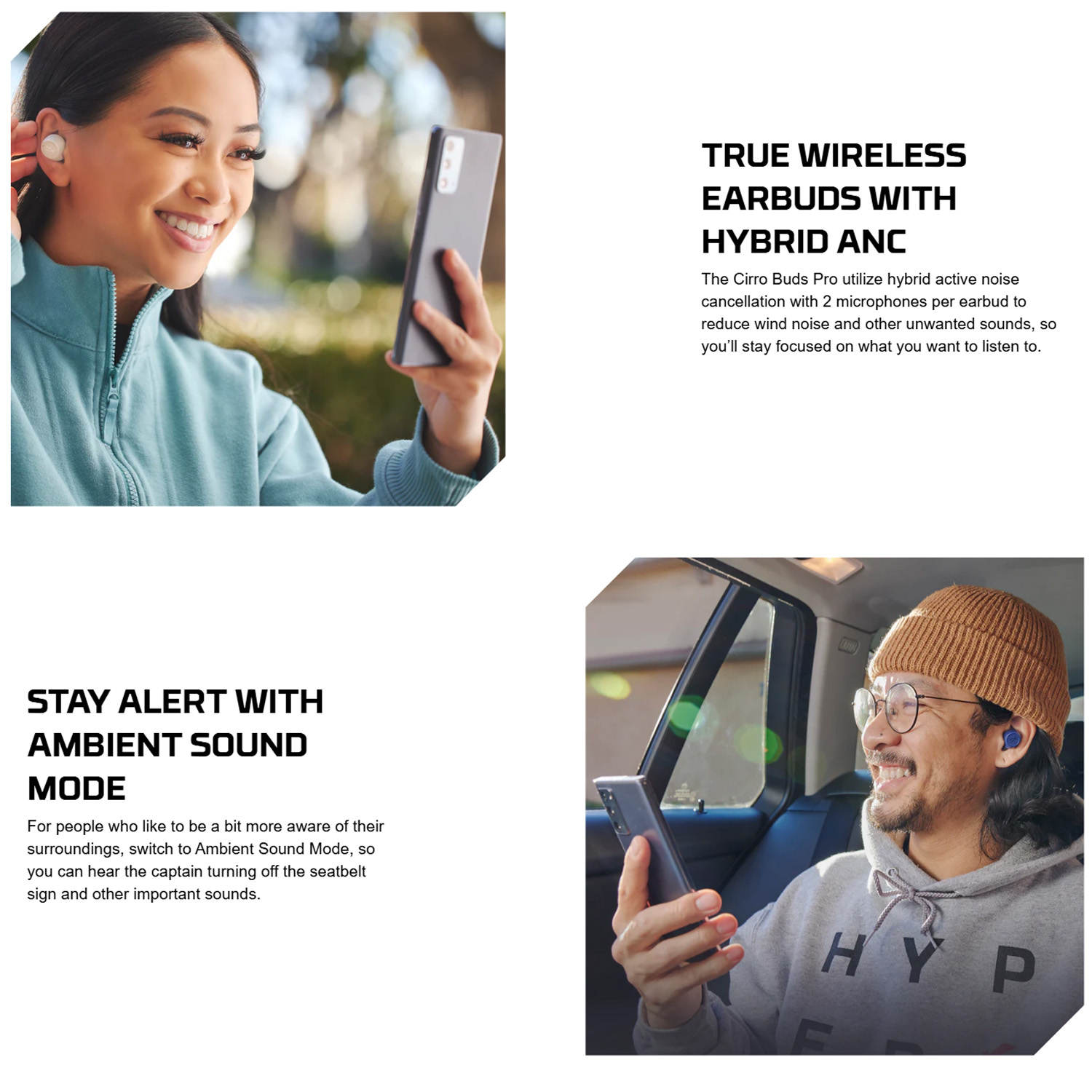 True Wireless Earbuds with Precision Noise Cancelling: The Cirro Buds Pro utilize hybrid active noise cancellation with 2 microphones per earbud to reduce wind noise and other unwanted sounds, so youโll stay focused on what you want to listen to