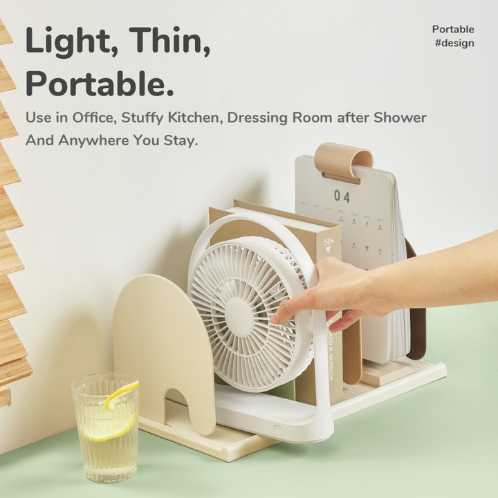 JISULIFE FA19 Desktop Fan dedicated to your summer refreshment, cool wind, more serenity. Whether you're at the office, sleeping, camping out, fresh out of the shower in the locker room, hot in the kitchen, or looking for a great travel option, it is a great choice to give you a break from the summer heat, it's thin, light, and portable, and it goes everywhere you go.