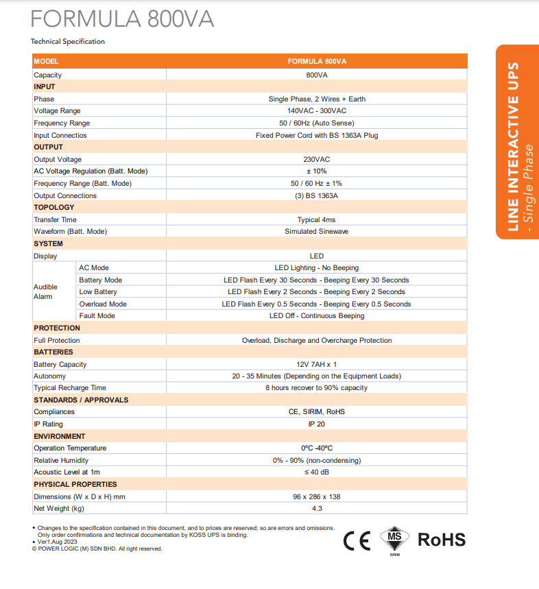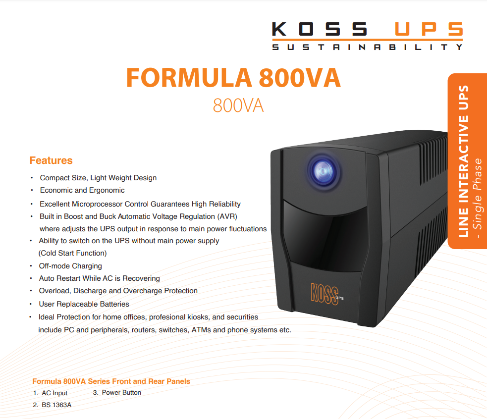 โข Built-in Boost & Buck Automatic Voltage Regulator (AVR) where adjusts the UPS output in response to main power fluctuations