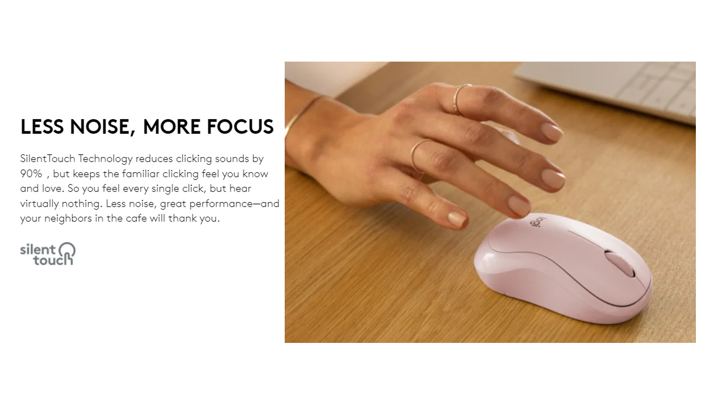 SilentTouch Technology: 90% noise reduced Left/Right-click, Middle click