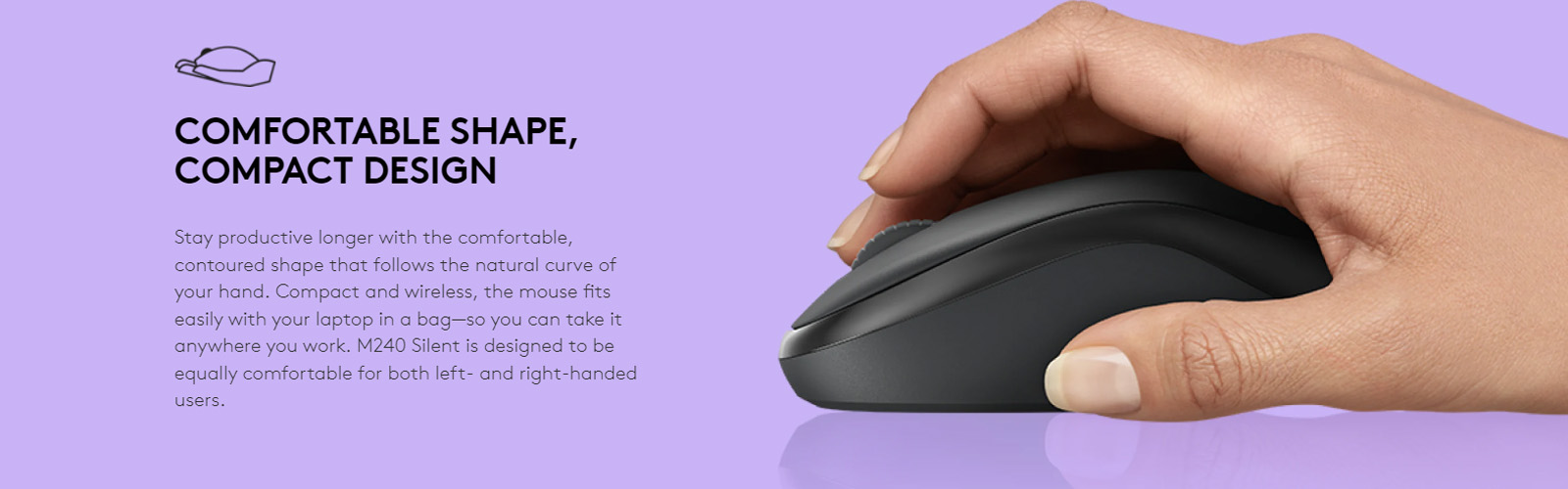 Reliable Bluetoothยฎ mouse with comfortable shape and silent clicking