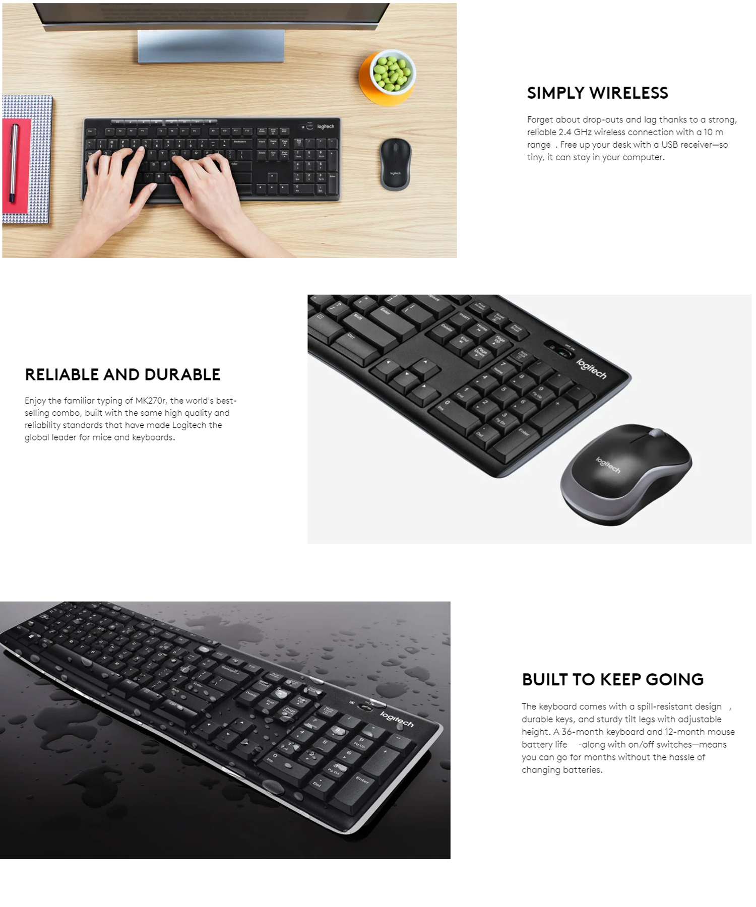Full-size wireless combo. MK270r Wireless Combo brings together the convenience and comfort of a full-sized keyboard with a sculpted, compact mouse. With media keys, a number pad and precise cursor control to make your work a whole lot smoother.